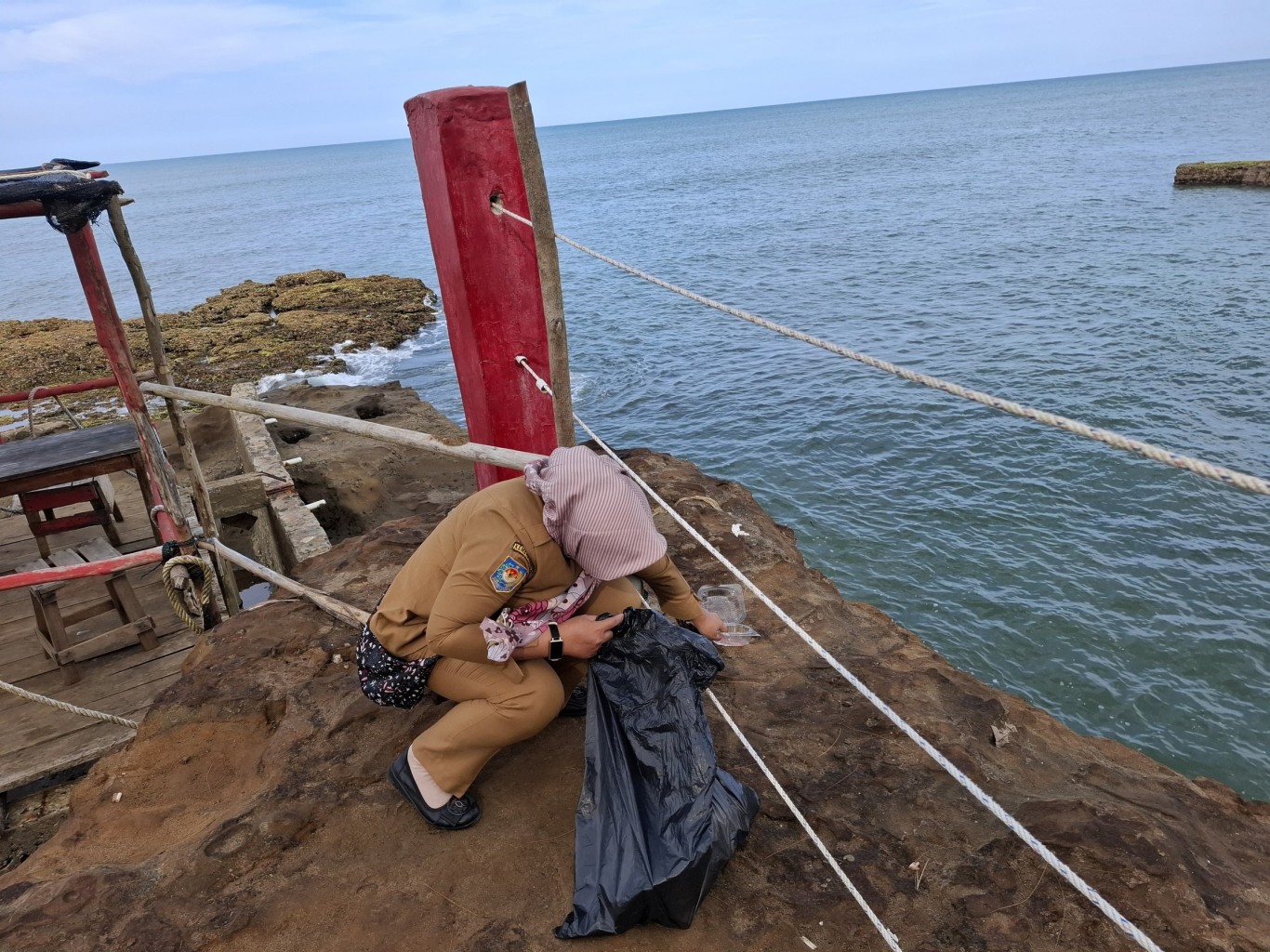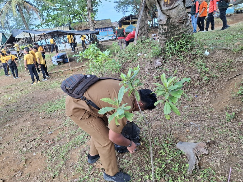 Dalam kegiatan tersebut, seluruh peserta bergotong royong membersihkan area pesisir pantai dari sampah plastik, dedaunan, dan berbagai limbah yang dapat mengganggu keindahan lingkungan. Suasana kebersamaan dan semangat kolaborasi antarinstansi terlihat jelas selama kegiatan berlangsung.